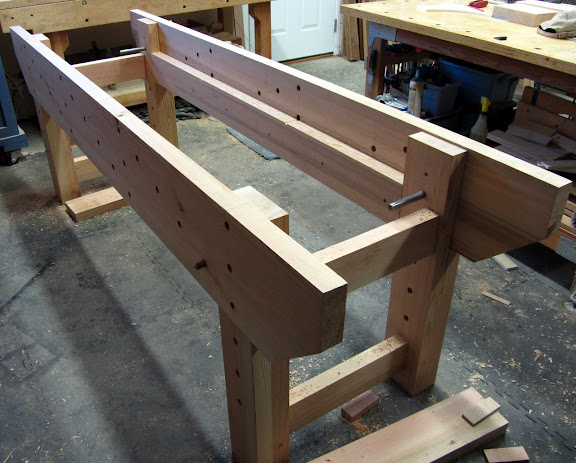 Excellent job, it's really coming together! I'm following your build closely as I am planning to build one in the near future. Can't wait to see the finished product. I noted that you drilled holdfast holes in both aprons. Are you planning to work from both sides of the bench?