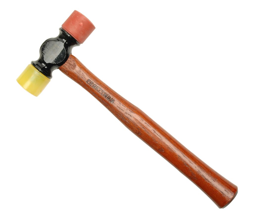 It has hard plastic and soft rubber replaceable tips and a comfortable hickory handle. At just $9.99, it's a bargain and is just right for gentle persuasion during assembly. They also have a 12 oz. version if you want more heft. I understand several other companies make similar products.